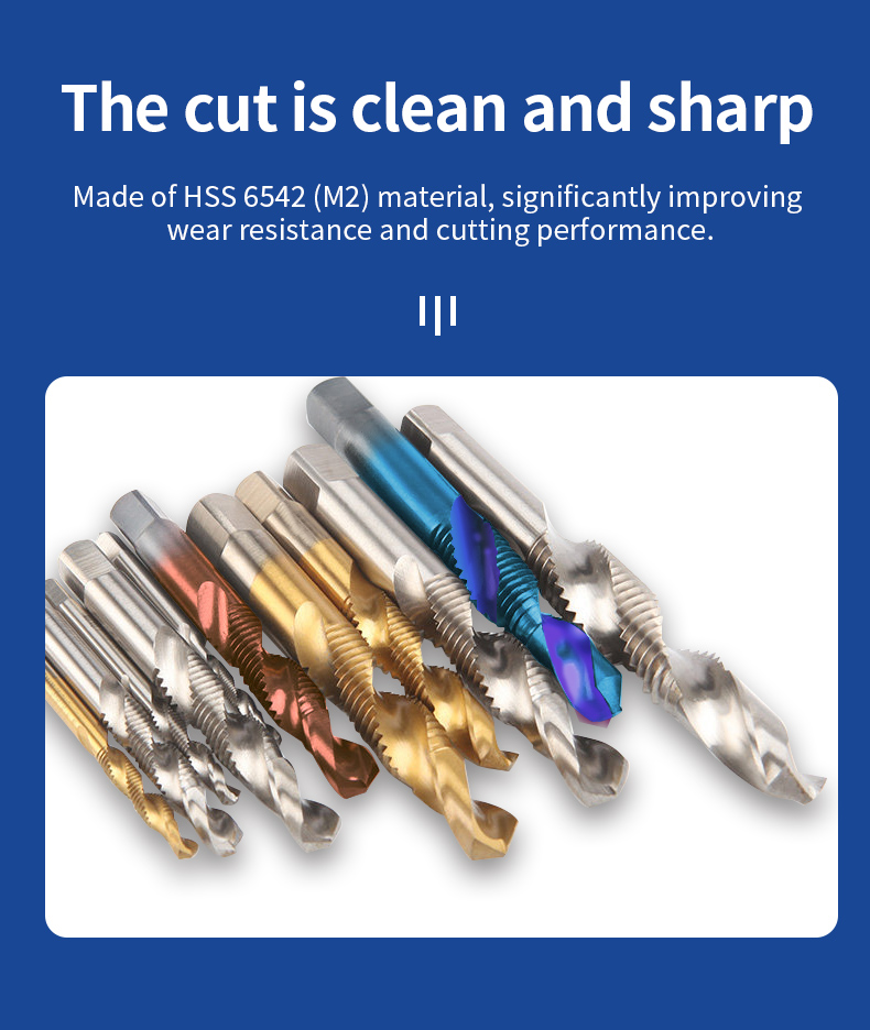 Material e fabrico: Normalmente forjado em aço rápido (HSS). Alguns produtos possuem um revestimento de titânio para aumentar a dureza, a resistência ao desgaste e o desempenho de corte, sendo adequados para materiais como aço inoxidável, liga de alumínio, ferro e cobre.
