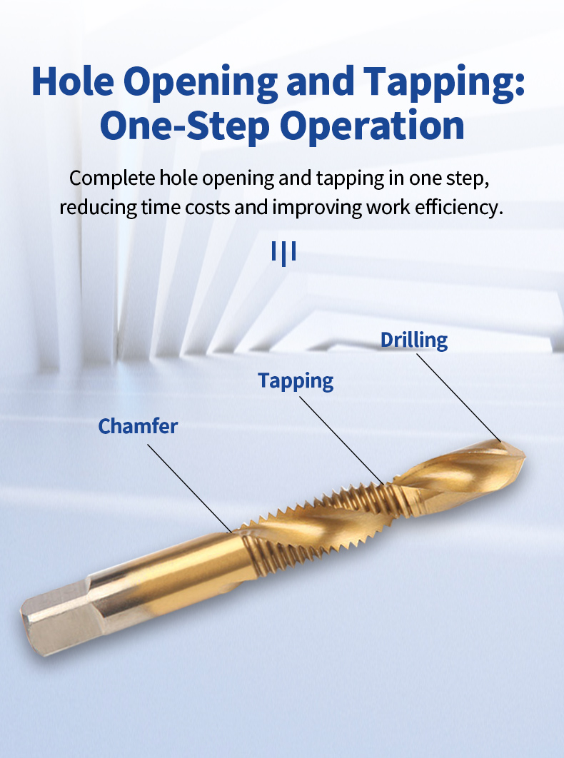 O macho combinado 3 em 1 é uma ferramenta de alta eficiência que integra funções de perfuração, roscagem e escareamento. Permite uma operação de passo único para realizar tarefas que tradicionalmente exigem diversas etapas e ferramentas.