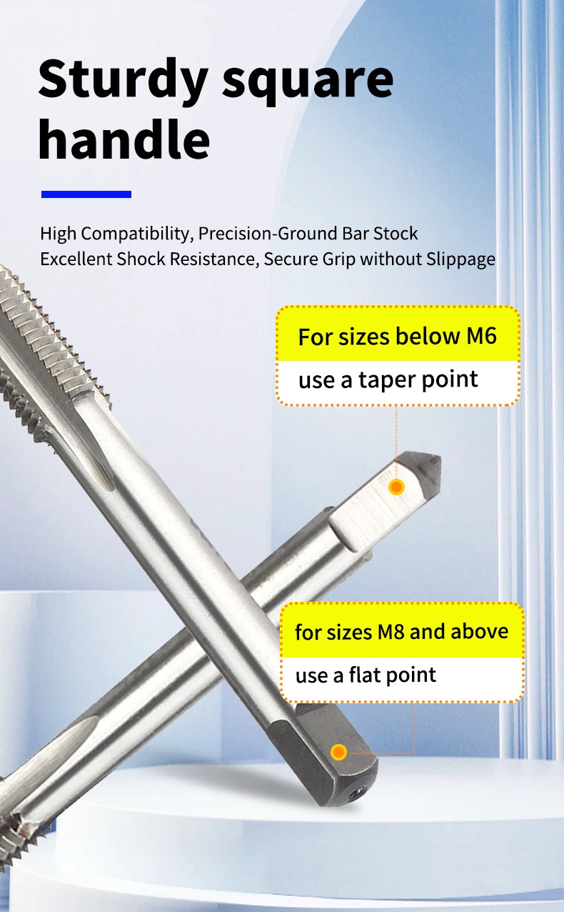 Os machos de rosca reta são adequados para maquinar uma grande variedade de materiais, trabalhando eficientemente tanto metais ferrosos (como o aço e o ferro fundido) como metais não ferrosos (como o cobre e o alumínio). Além disso, podem ser utilizados para furos passantes e furos cegos (especialmente os rasos), o que os torna amplamente aplicáveis em diversas máquinas-ferramenta, incluindo berbequins, fresadoras e centros de maquinação.